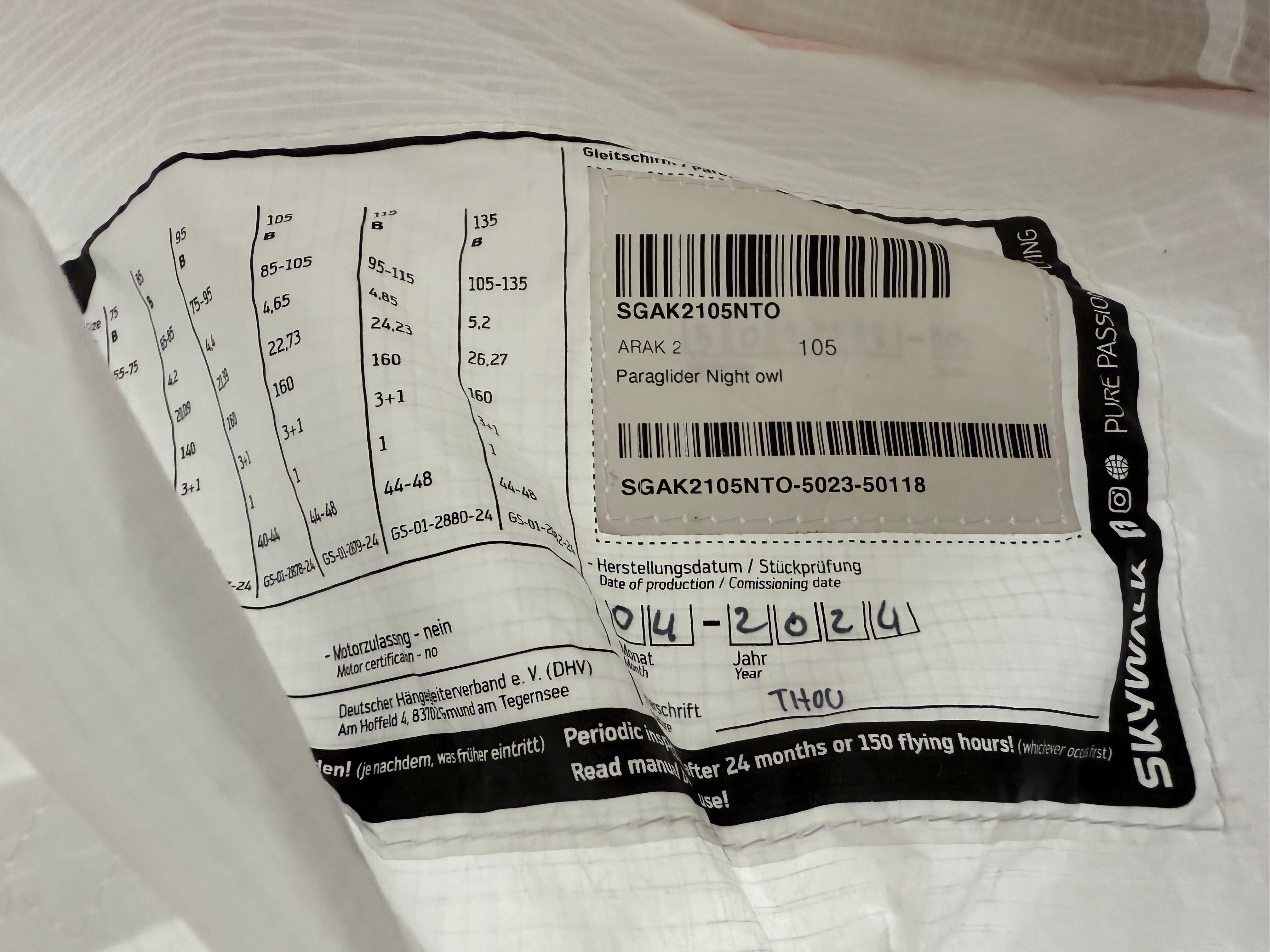 skywalk ARAK 2 105. PVT 85-105KG Con revisione valida per 2 anni Anno 04/2024 |